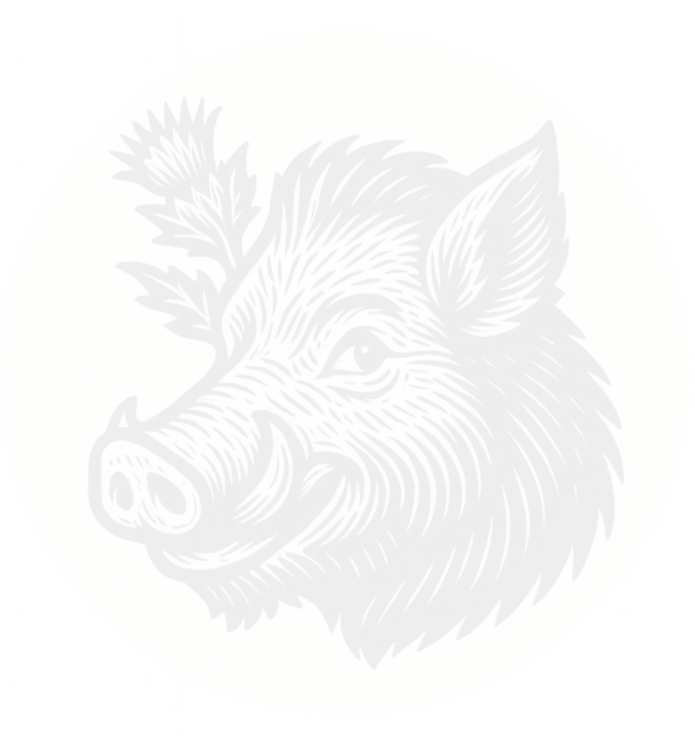 The boar is fierce persistence, rooted in the earth and unwilling to be tamed. The thistle, stubborn and sharp, blooms in the margins where least expected. Together, they hold a space for work that resists the polished and the disposable, honoring instead the handmade, the hard-earned, and the defiantly human.